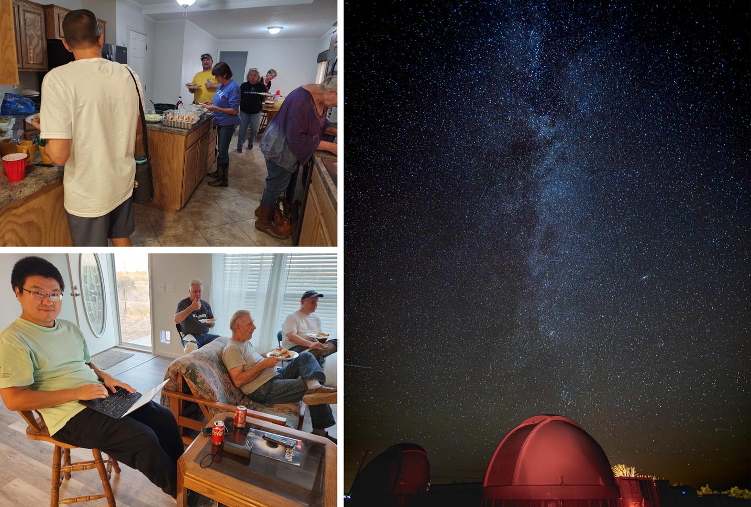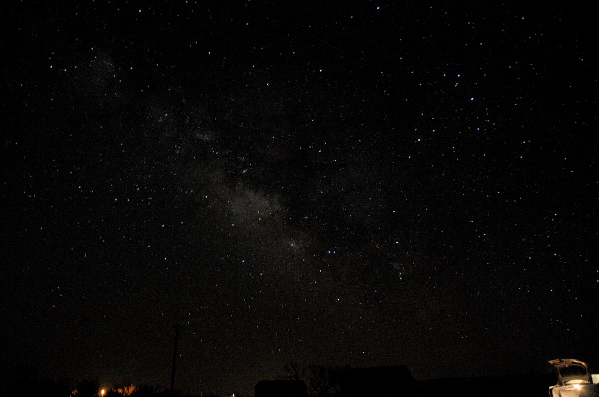 Cat-Star Sky Ranch hosted the 2024 South Plains Astronomy Club (SPAC) Star-BQ on 5-6 October 2024. This is a semi-annual dark-sky observing event that starts off with a barbecue dinner for the attendees. Prior to sundown, around sixteen Club members set up their telescopes at the site and then enjoyed a meal of BBQ brisket with all the fixings. After darkness fell, the attendees were treated to perfect observing conditions— clear skies, light winds, and mild temperatures. Many hung around til the early morning hours to catch the parade of astronomical objects rising above the eastern horizon. Thanks to the dark skies at the site, many observers were able to spot objects normally too dim to see at other locations. A great time was had by all— a few photos from the event are shown below (Milky Way photo courtesy of Erin Shaw). [posted 18 Nov 2024]