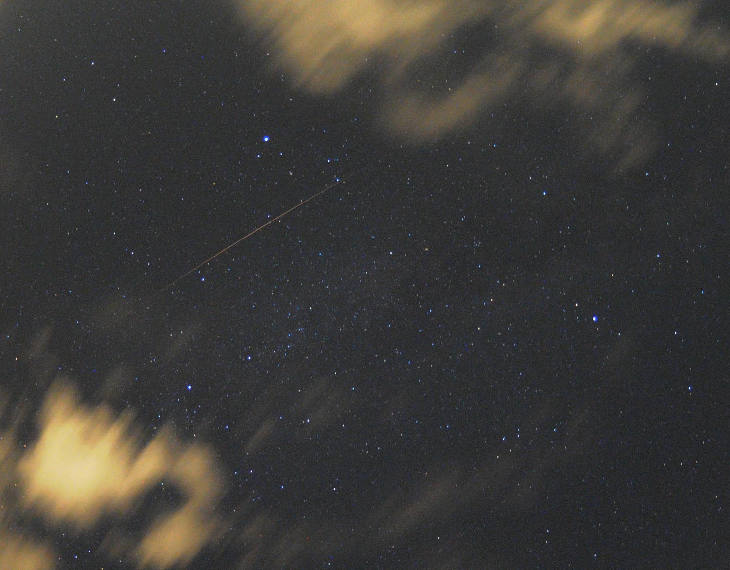 - A solitary Perseid cuts through the Summer Triangle on the night of 12 August 2023, shot with a Nikon D300 DSLR.